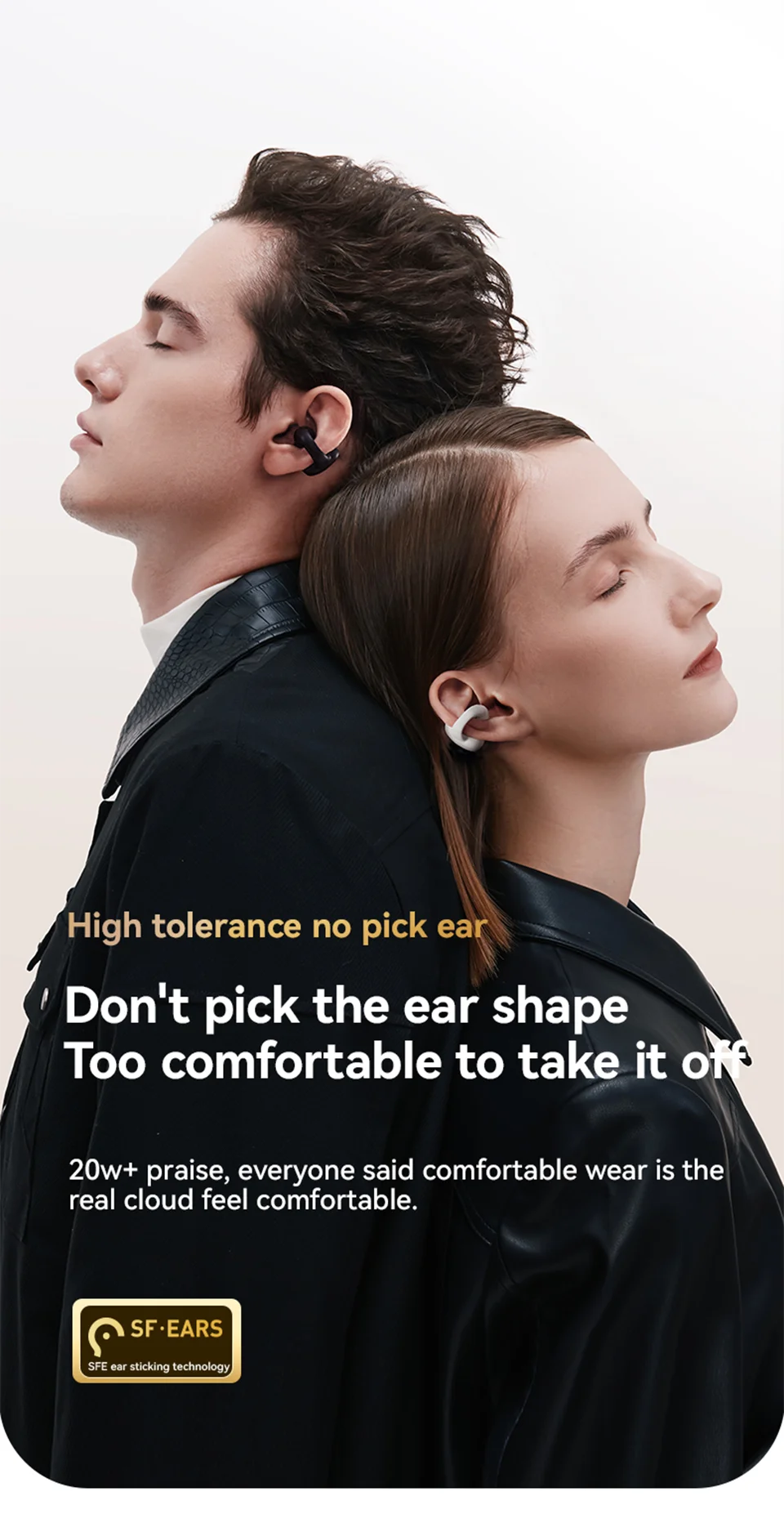 Ear Clip Comfort: Lightweight (~12 g) non‑invasive ear clip design provides a secure and comfortable fit without entering the ear canal.