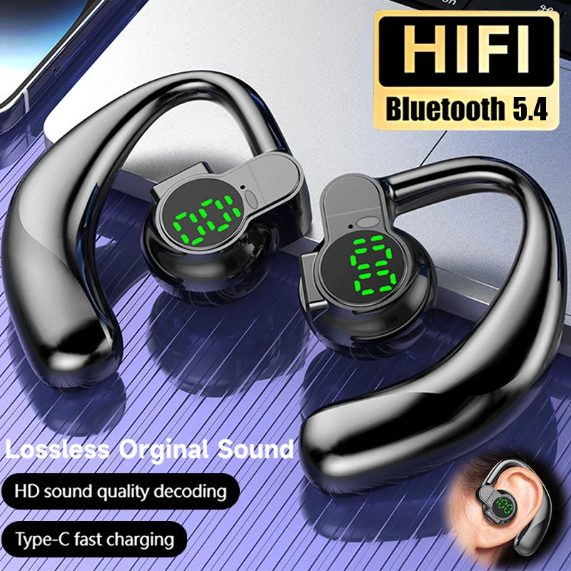 The BAPPSUS Bluetooth 5.4 Single-Ear Ear Hook Headset blends bone conduction audio, active noise cancellation, and a smart digital display into a stylish, rotatable design perfect for sports, business, and daily calls. With its 180° adjustable fit, it can be worn comfortably on either ear.