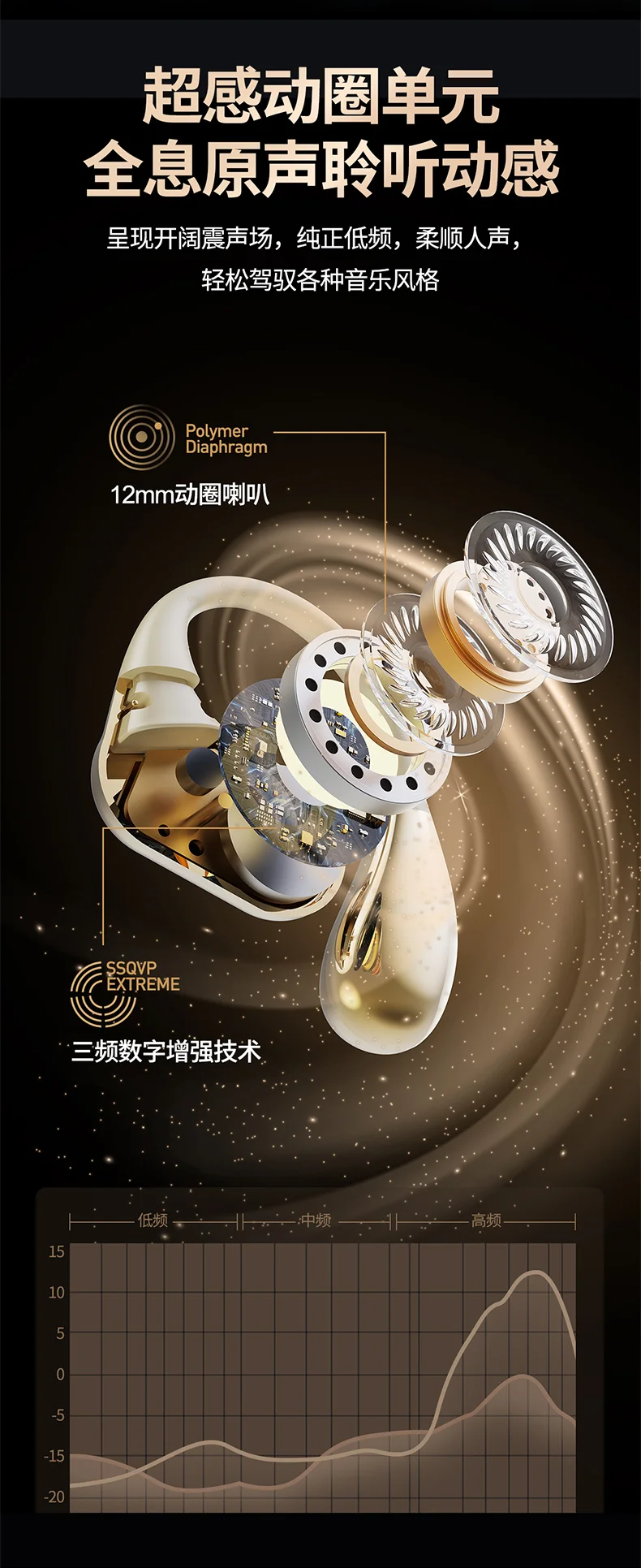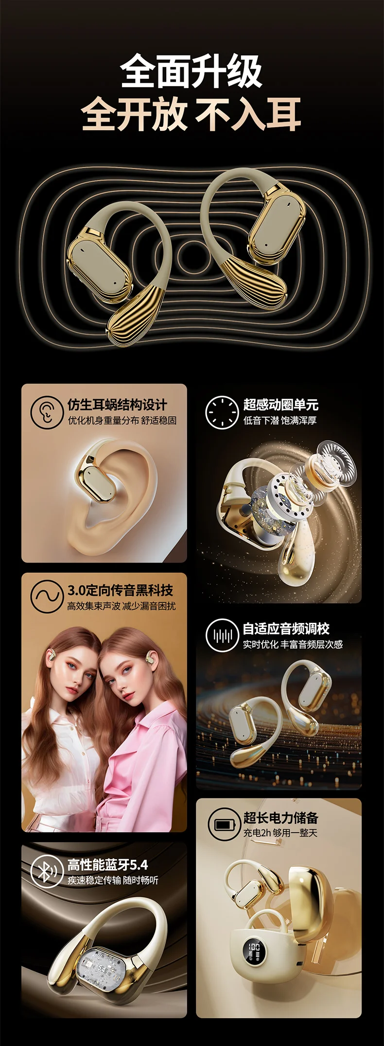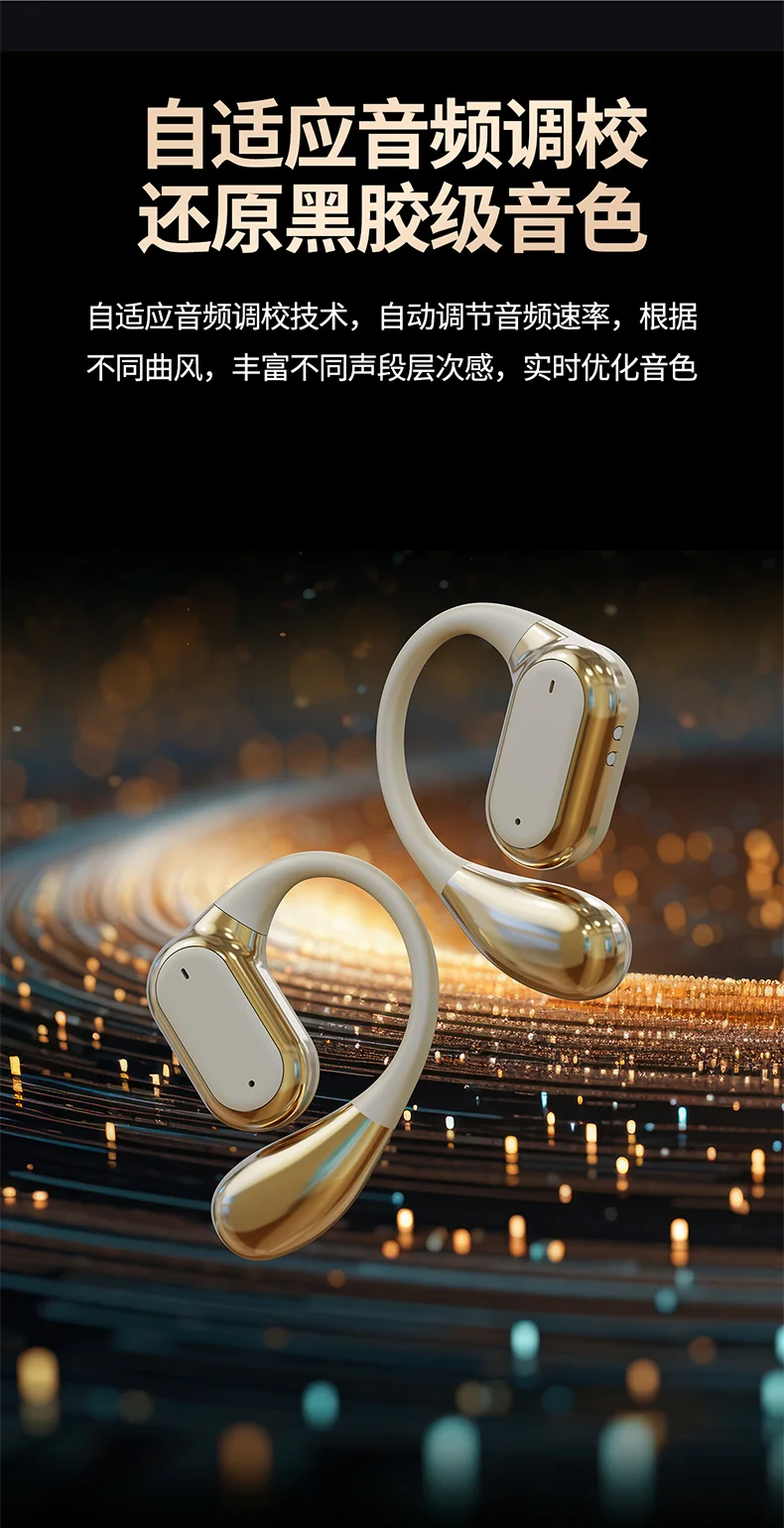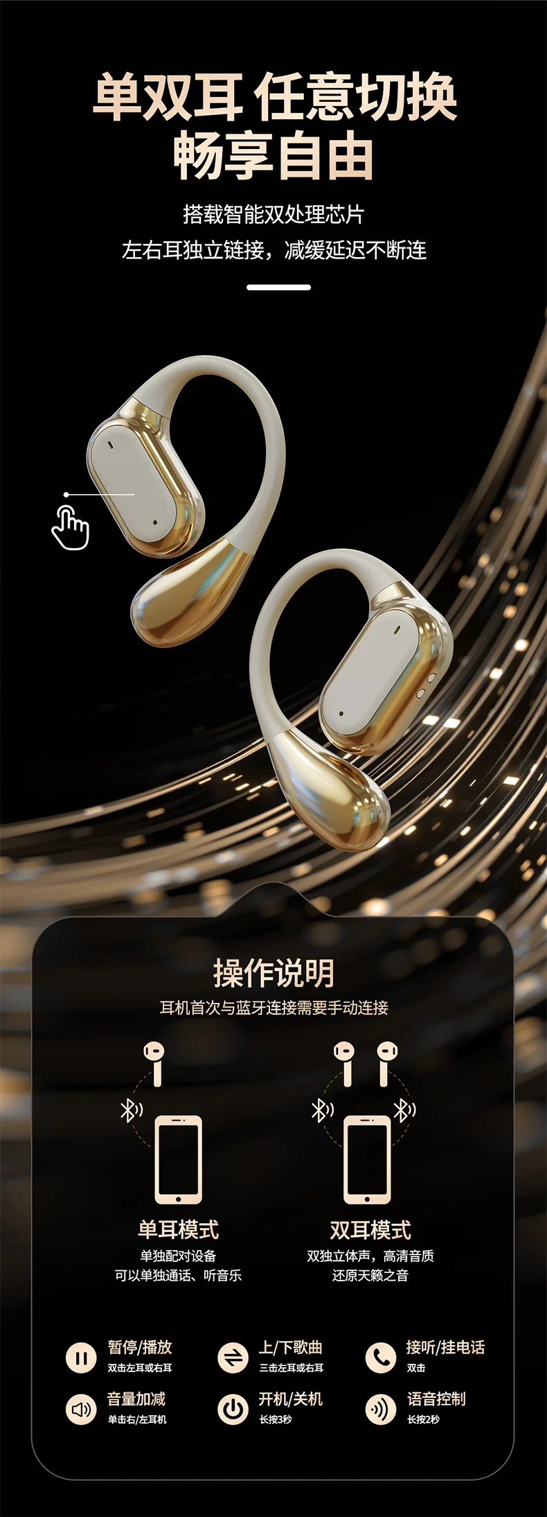Bluetooth 5.3 OWS ear hook headphones with mic, waterproof and HiFi sound, perfect for sports and office use