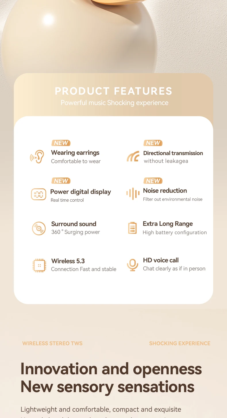 Bluetooth 5.3 Open-Ear Earphones – ANC, Touch Control