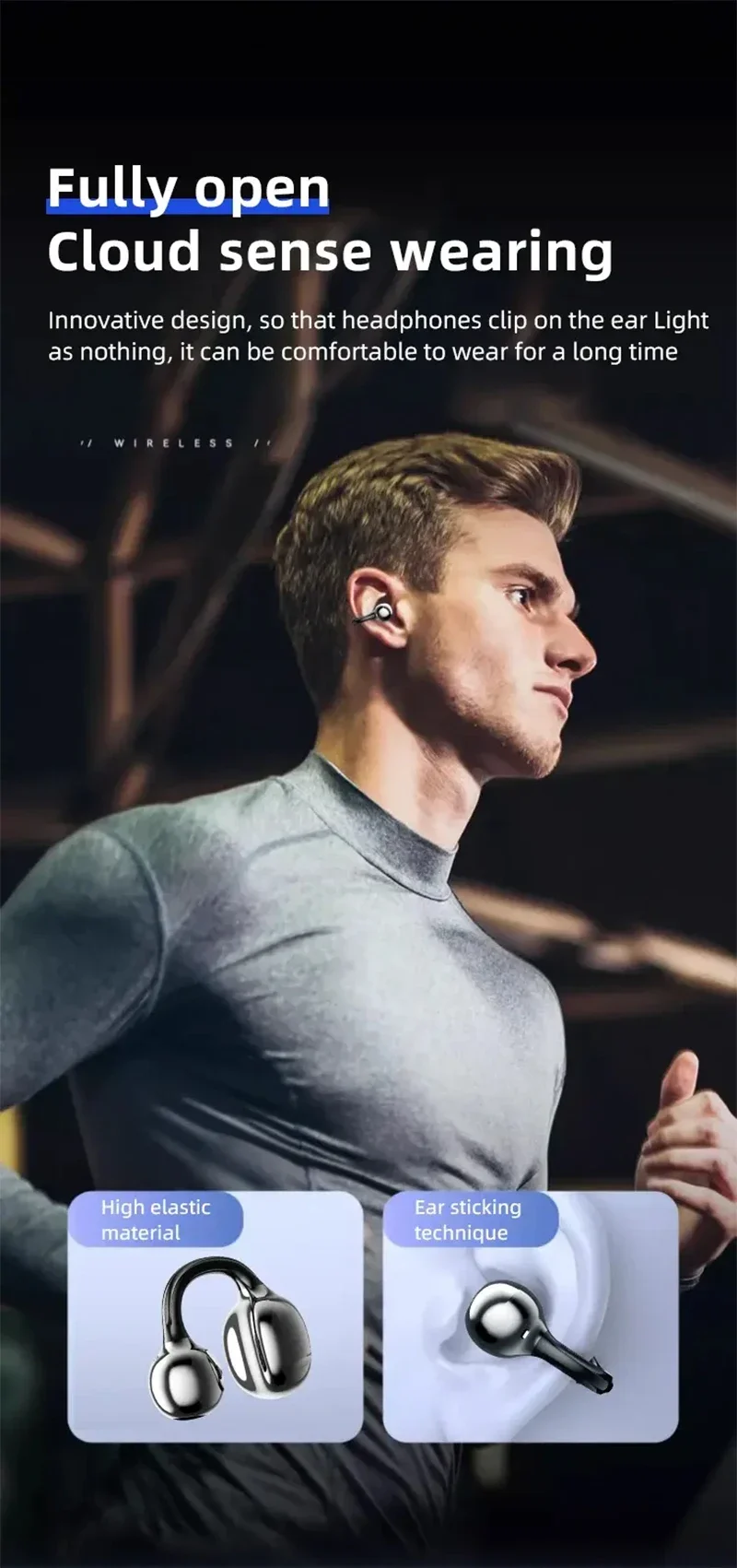 Bone conduction Bluetooth headphones with noise cancellation and waterproof design for sports and outdoor use