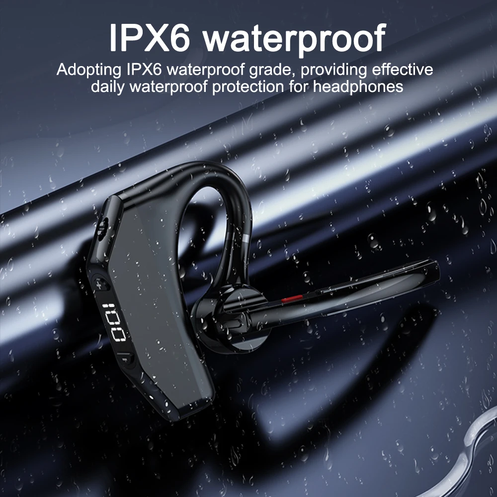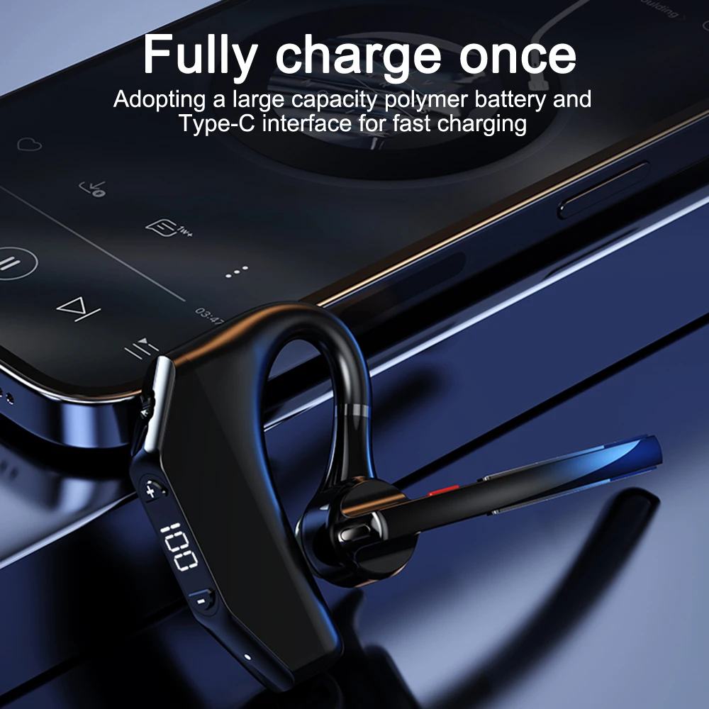 CUGUU V23 Bluetooth 5.3 wireless headset with ENC dual mic noise reduction, LED power display, and rotating ear hook design