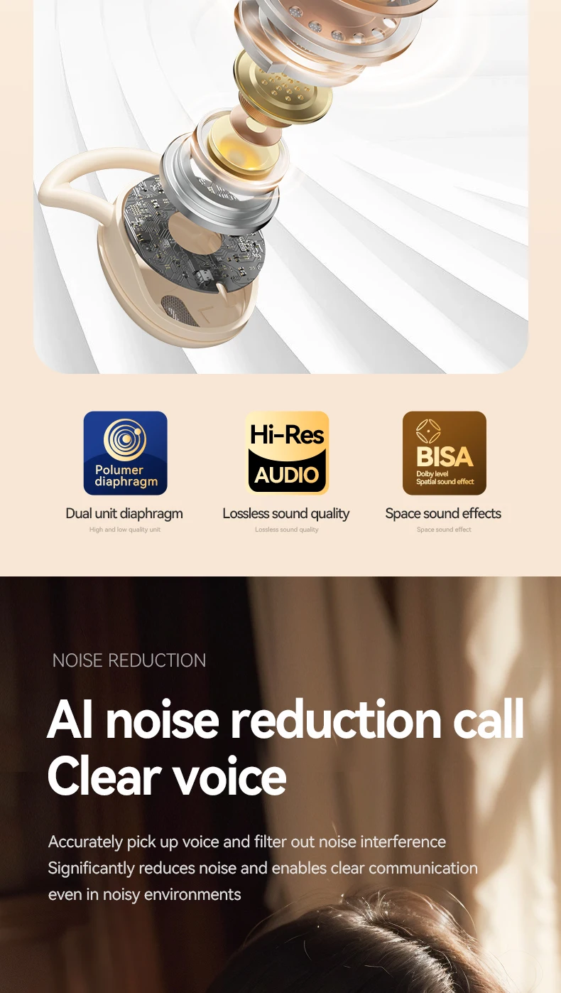 🔊 Bone Conduction Technology – Gentle, open-sound transmission ideal for sleep