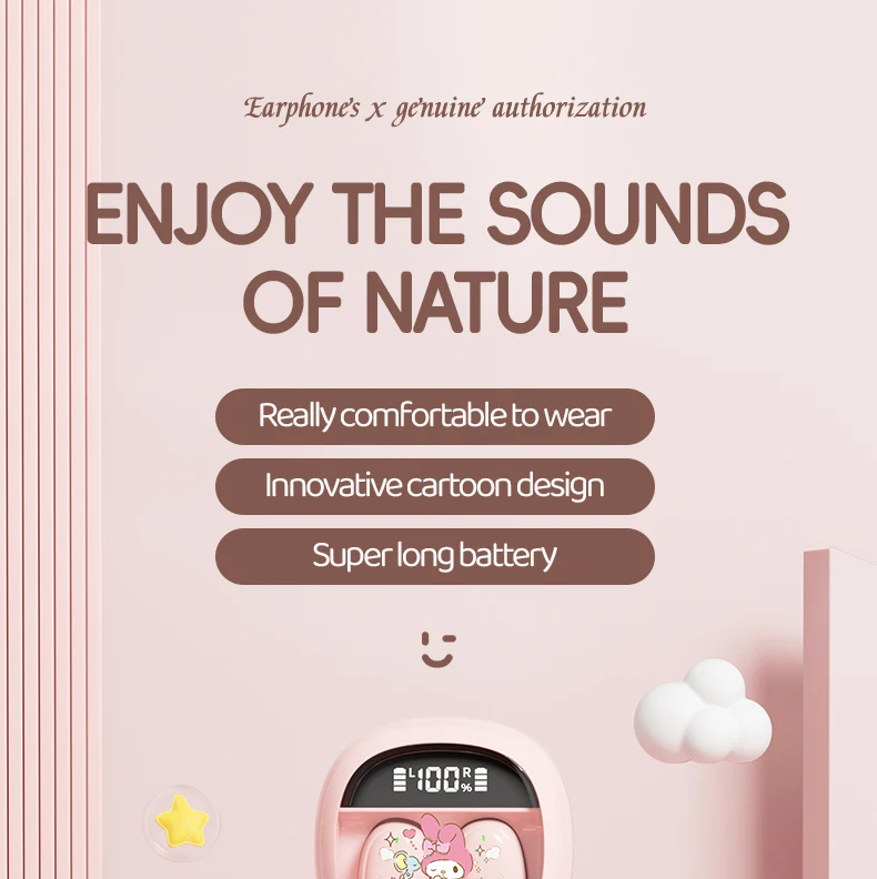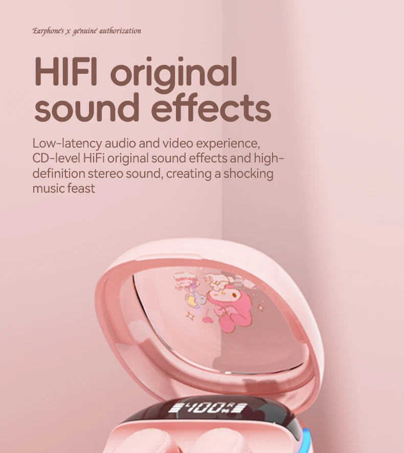 Hello Kitty TWS Earphones – Bluetooth 5.3, ANC, Waterproof