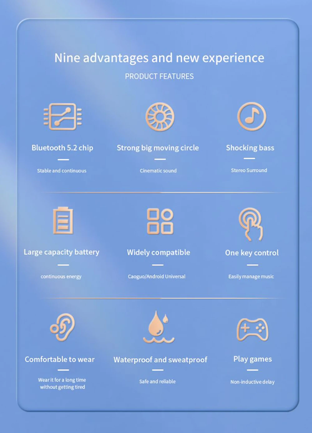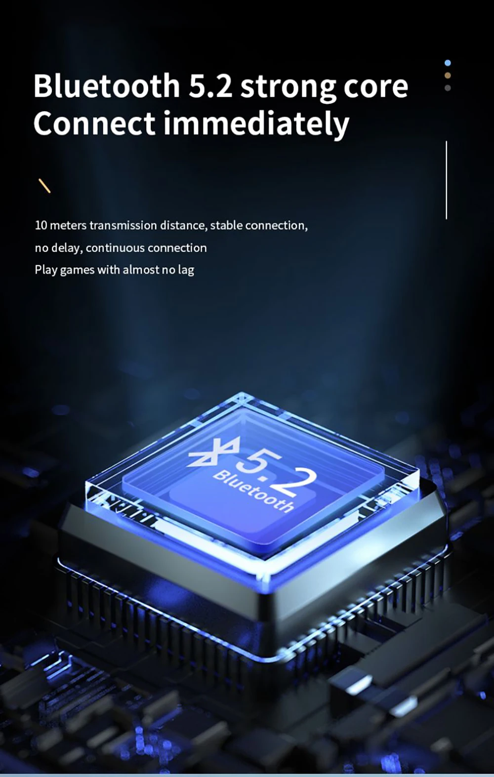 • Bluetooth 5.2 – Fast, stable wireless connection with low power consumption.