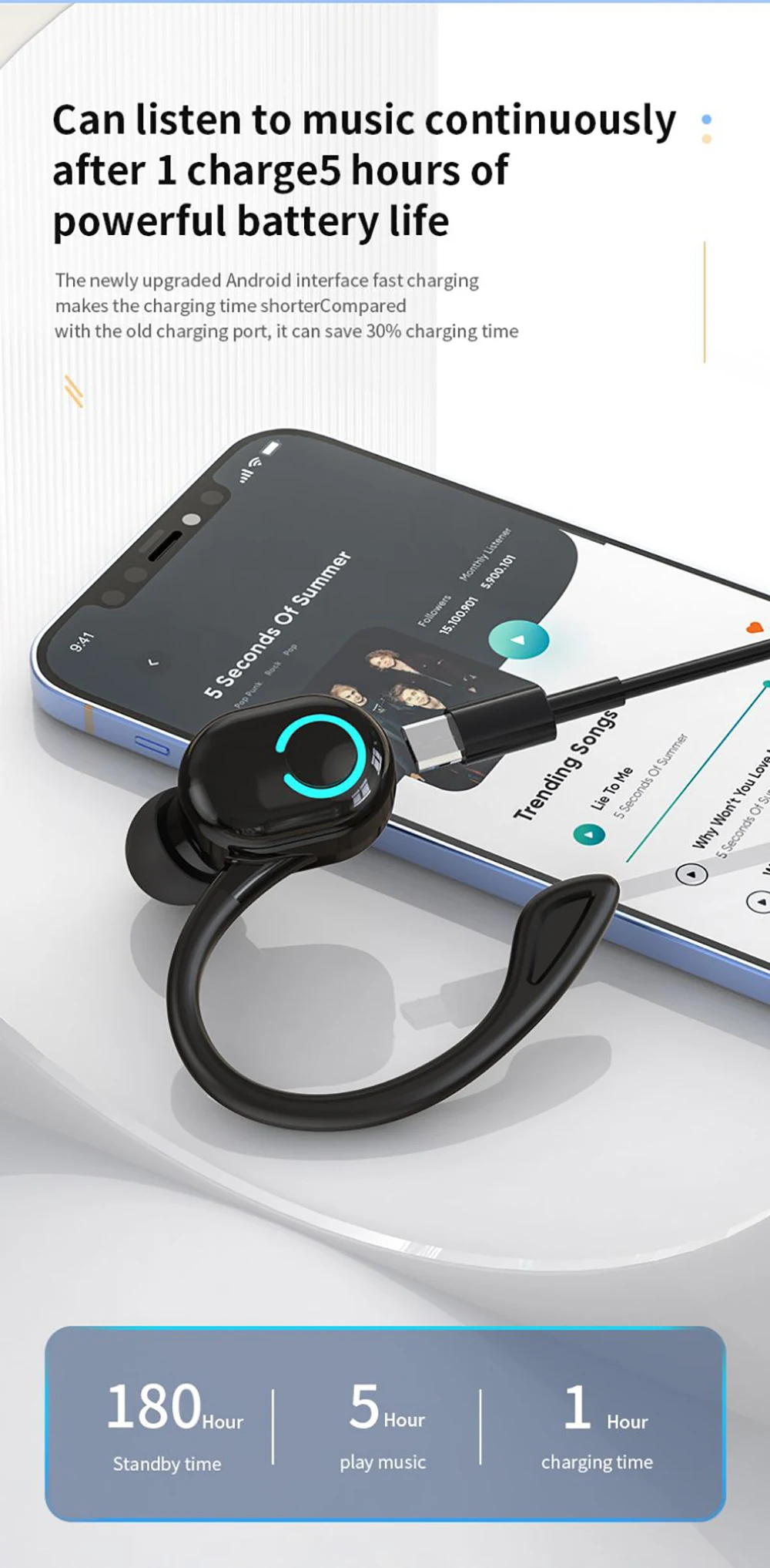 • Ergonomic Ear Hook Design – Secure fit for sports, training, and running.