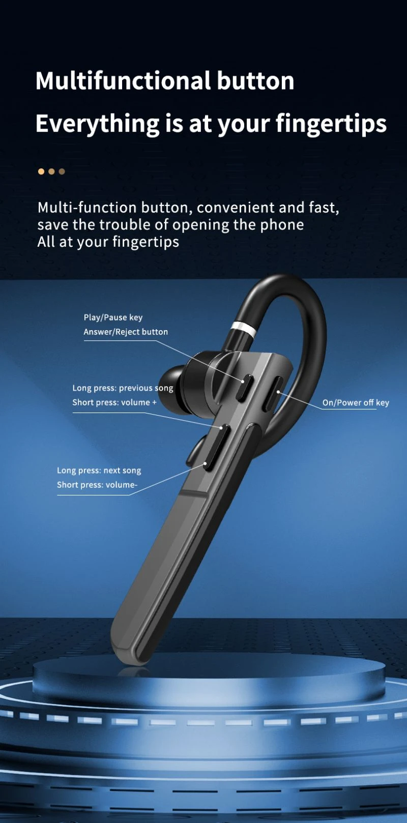 Stay connected and comfortable with the Kebidumei X6 Bluetooth 5.3 Wireless Ear Hook Headset, crafted for long-lasting performance and crystal-clear audio. With a 90mAh battery, IPX5 waterproofing, and up to 15 hours of playtime, this headset is your go-to for sports, work, and travel.