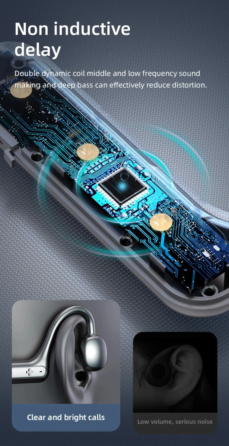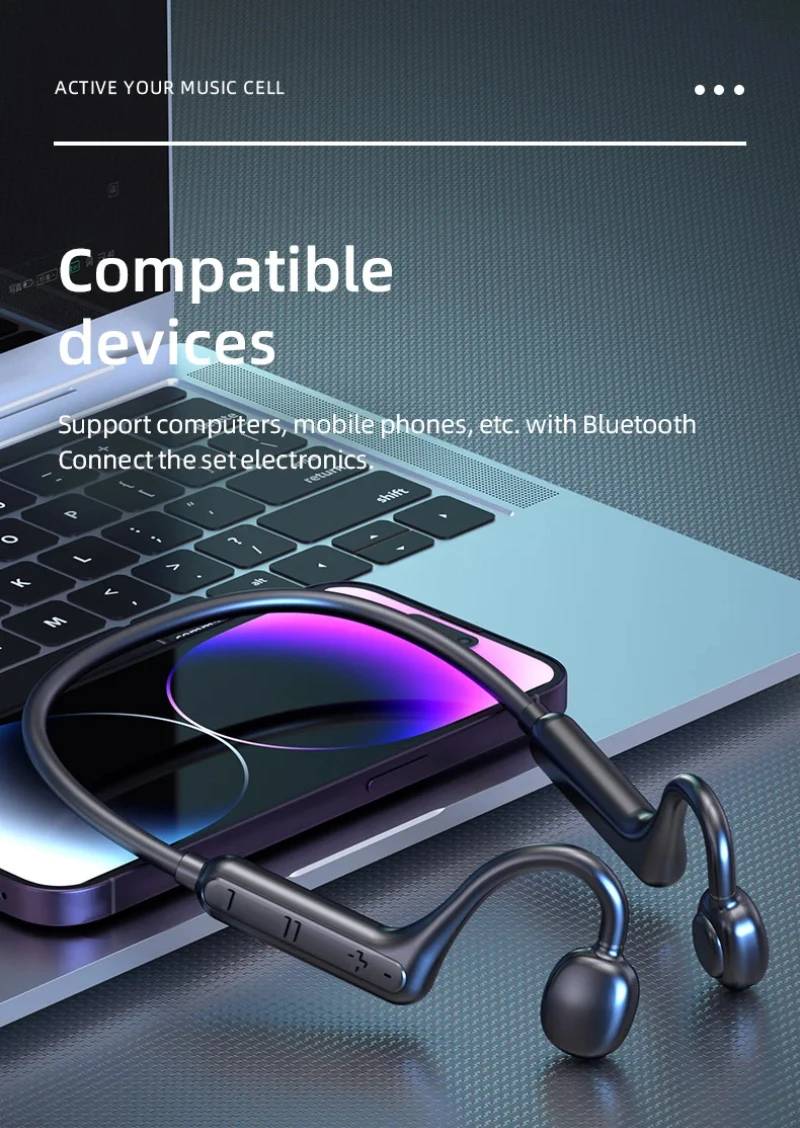 • Bone Conduction Technology – Listen without blocking your ears for safe, comfortable use.