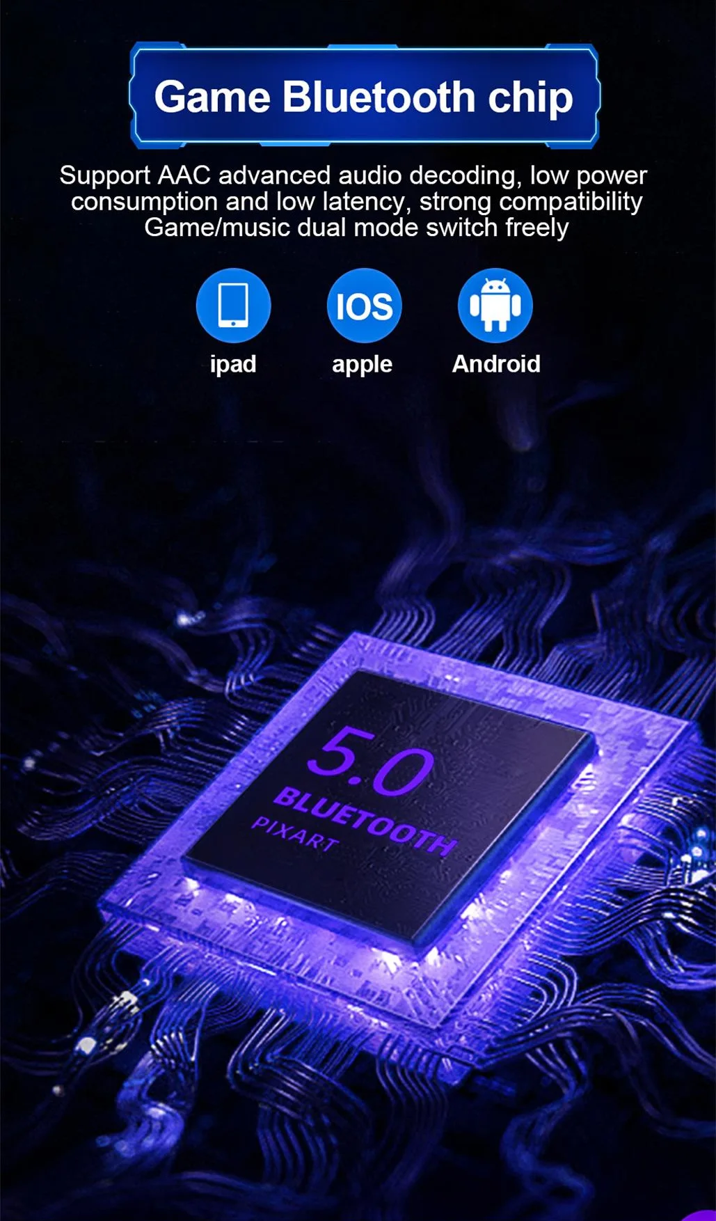 PloutoRich Bluetooth 5.0 Gaming Earbuds – Dual Mode, LED