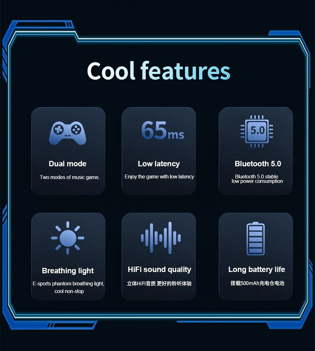 • Dual Music/Game Mode – Switch between HiFi music playback and ultra-low latency gaming.
