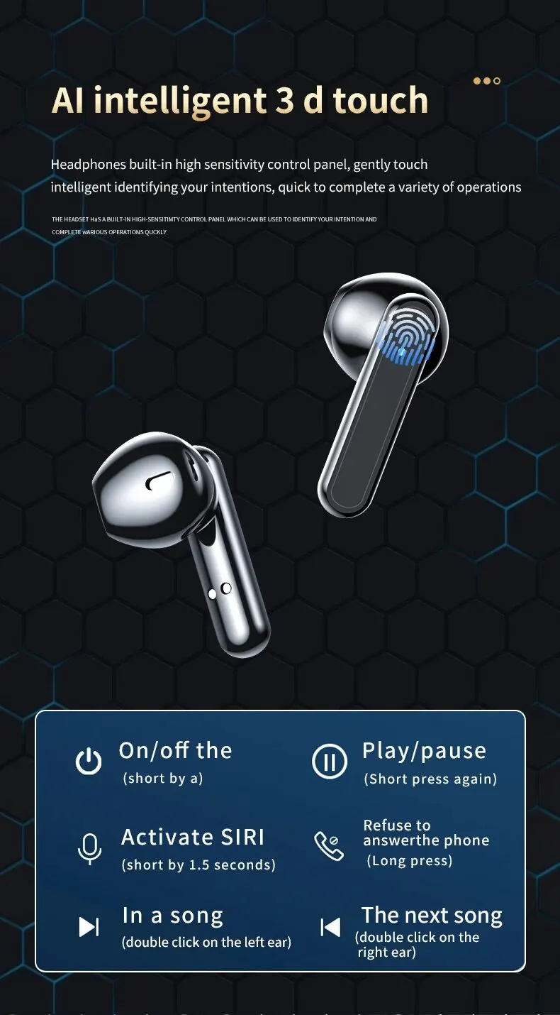 8mm hybrid drivers deliver premium audio with deep bass and crisp treble across a 20Hz–20kHz frequency range.