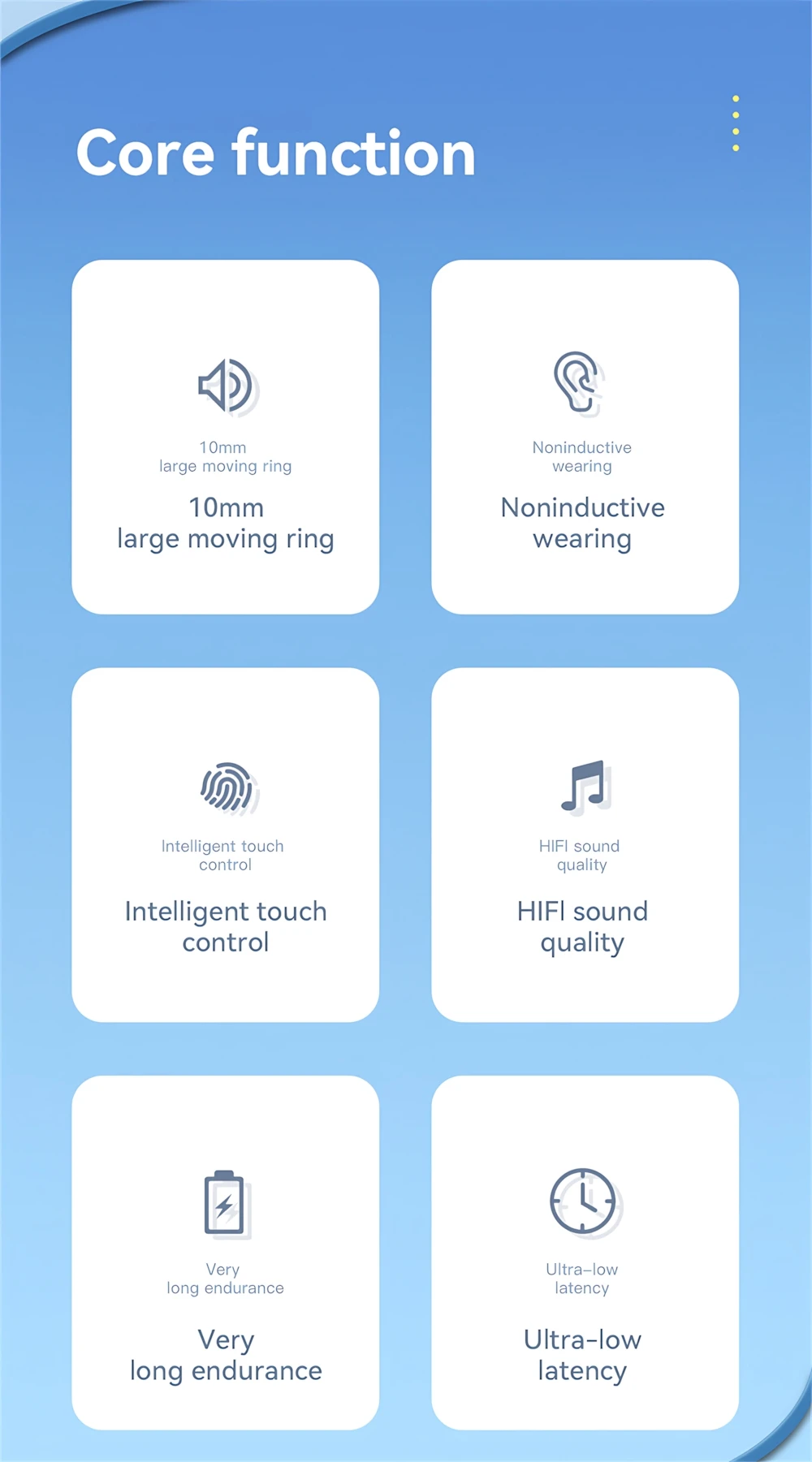 📲 Bluetooth 5.3 + Smart Pairing – Fast, stable connection and intelligent in-ear detection