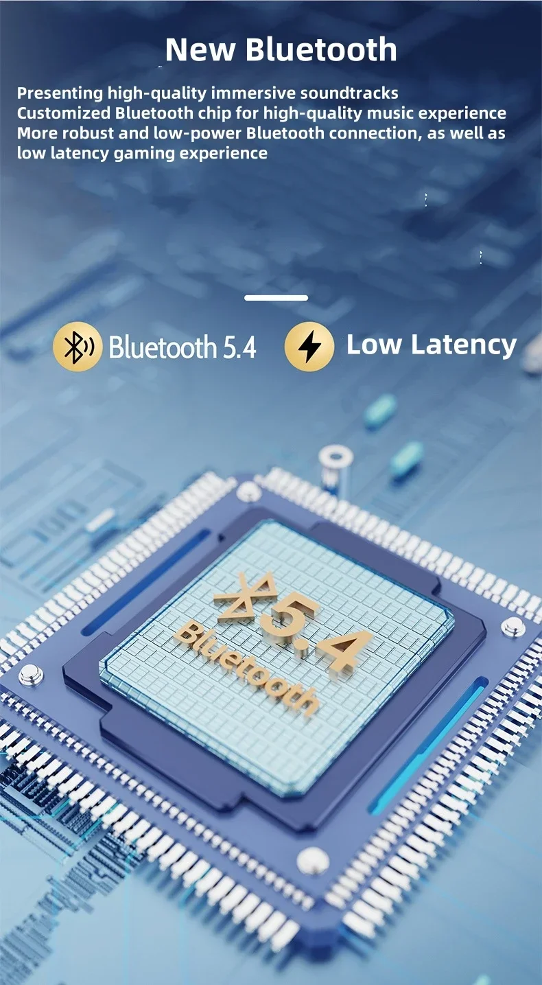 Customized Bluetooth chip for high-quality music experience, more robust and low-power Bluetooth connection, and low latency gaming experience