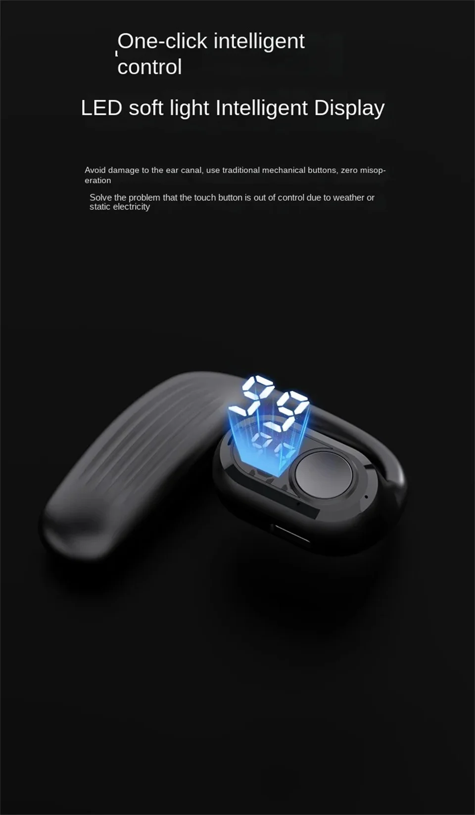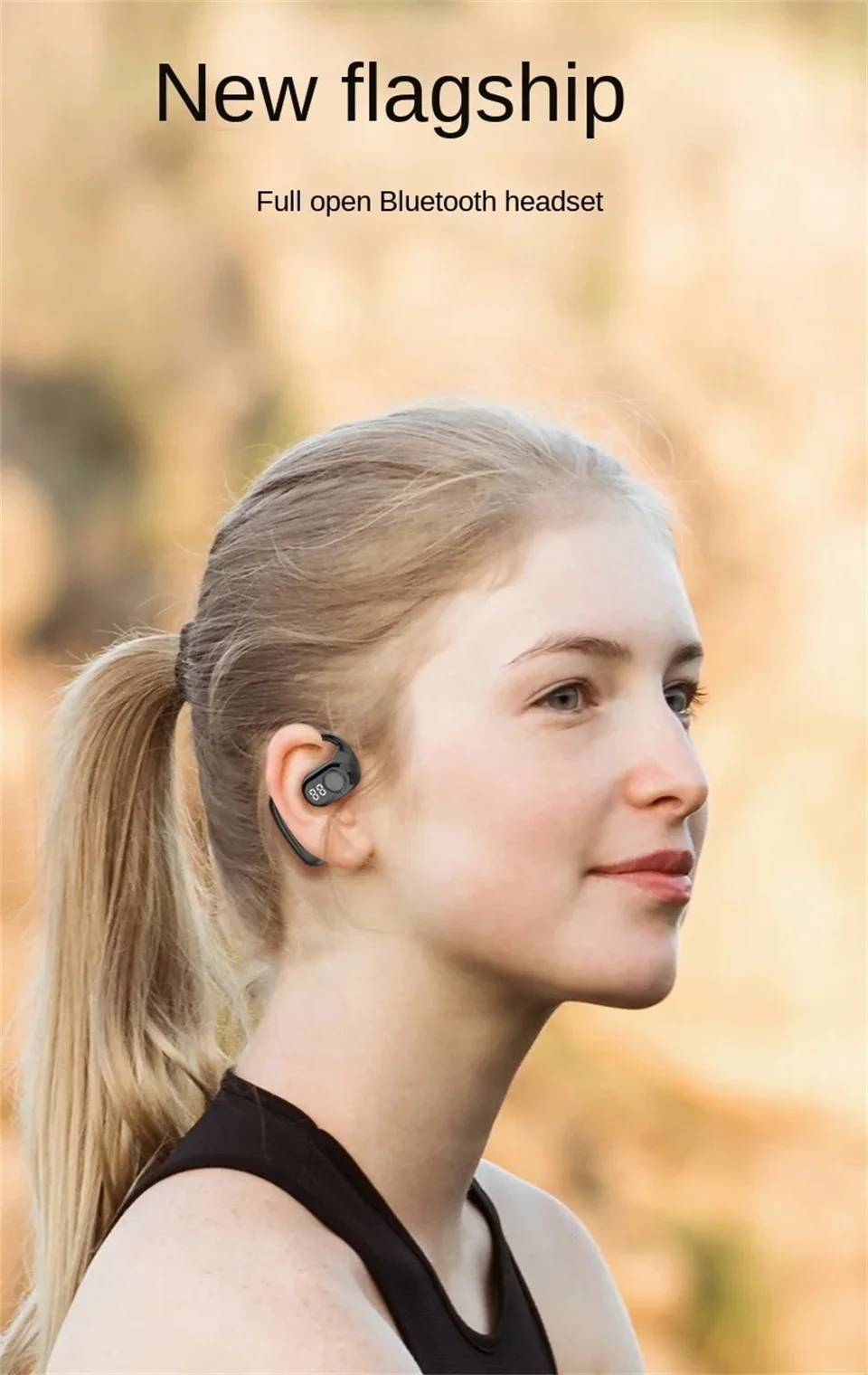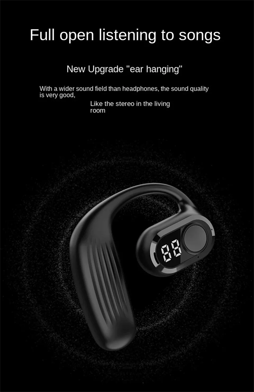 STTKGZD open-air conduction Bluetooth 5.3 headset with dual-mic ENC, LED display, and ear hook design for hands-free calls and sports