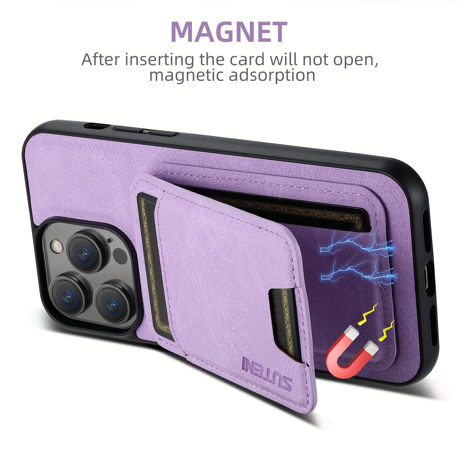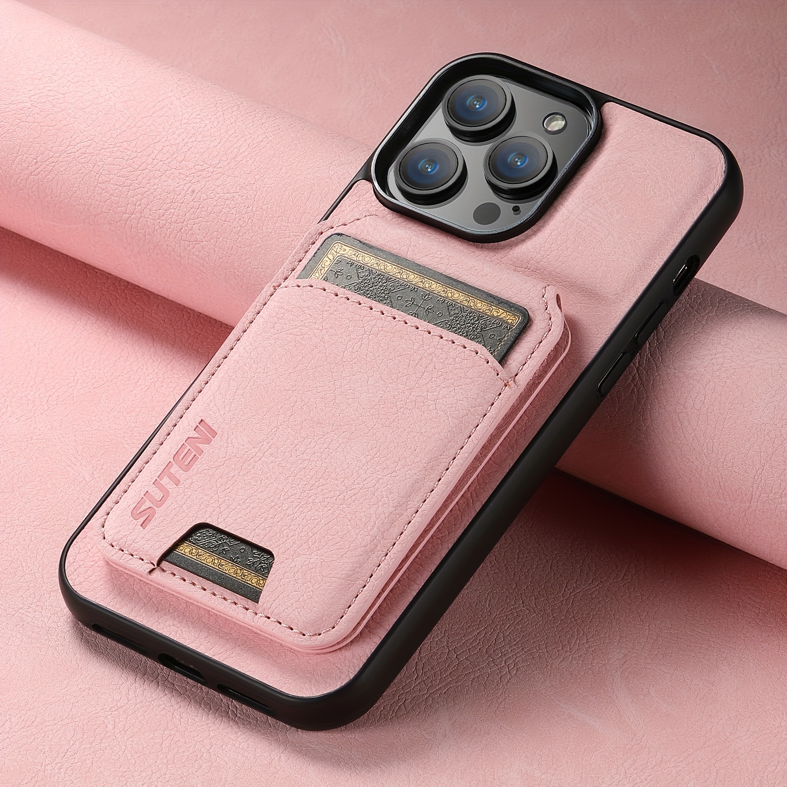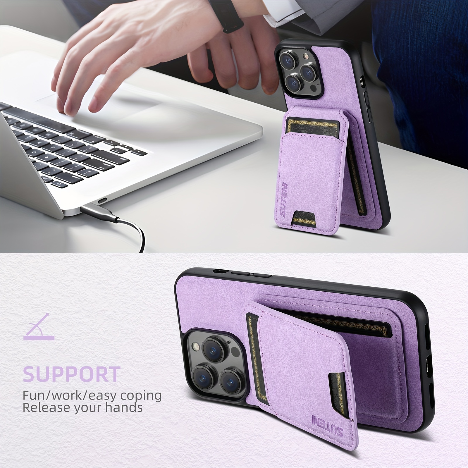 The SUTENI faux leather phone case delivers sophistication and smart utility in one stylish design. Featuring a textured lychee-pattern PU leather finish, built-in stand, and card holder, this case brings premium features to your iPhone without added bulk.