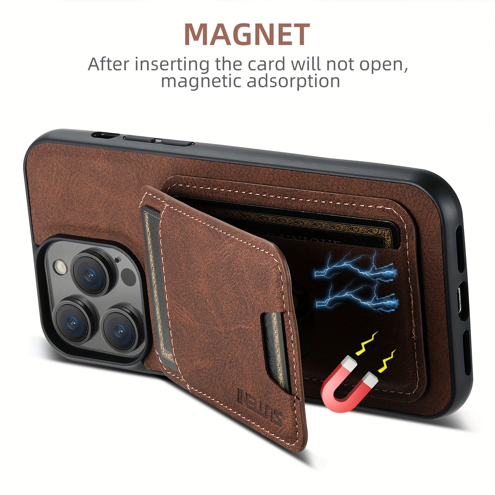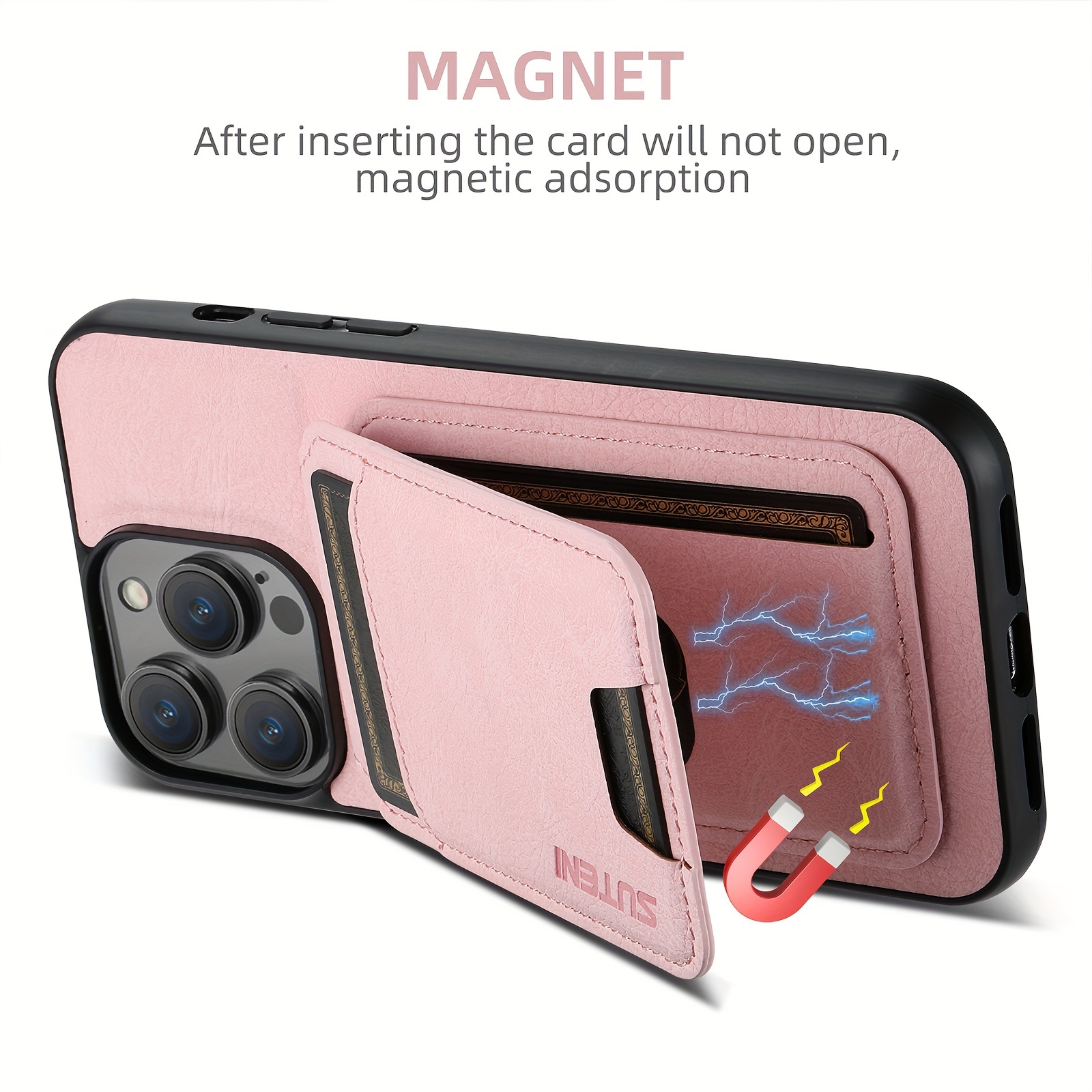 SUTENI faux leather wallet phone case with card holder and stand for iPhone in pink, brown, black