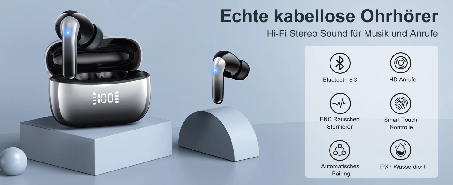 TWS Bluetooth 5.3 ANC Earphones – 36H Playtime, Alexa Support