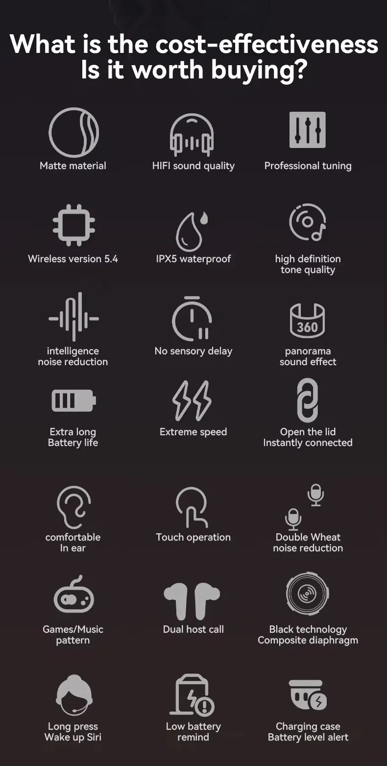 • 🔋 Charging Case Included – Recharge anytime, anywhere for extended battery life