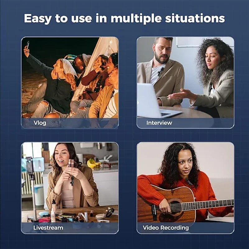 With an omnidirectional condenser capsule, you’ll capture clean audio from all directions — ideal for YouTube videos, TikTok, gaming, or Zoom calls. Whether you're on the move or standing in front of the camera, enjoy up to 20 meters (66ft) of wireless freedom, built-in noise cancellation, and long battery life in a compact, clip-on form.