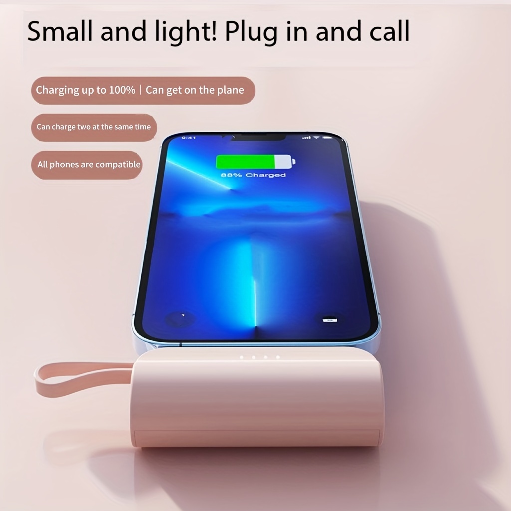 5000mAh portable power bank with USB-C, mobile phone stand, travel size charger